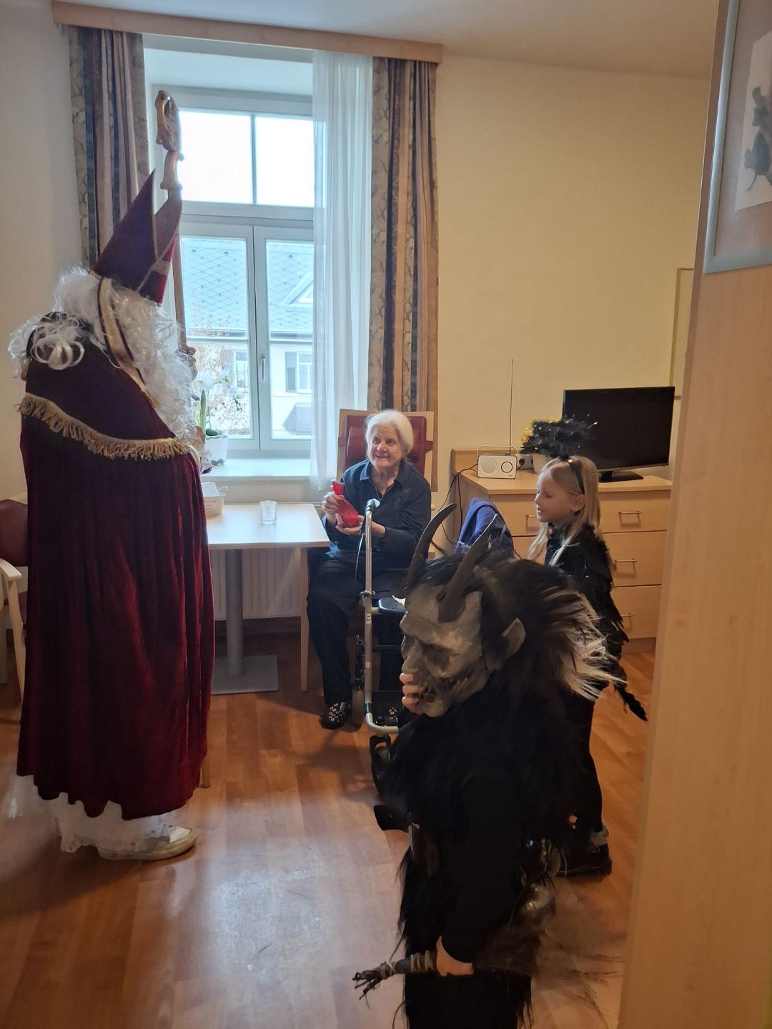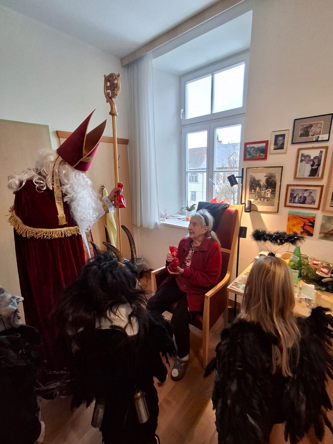 In der besinnlichen Adventszeit ist es eine lieb gewonnene Tradition, dass der heilige Nikolaus mit seinen Begleitern das SeneCura Kreuzbergl besucht. So auch in diesem Jahr, als der Nikolo mit einem strahlenden Lächeln und einem Sack voller Geschenke die Türen öffnete. Mit ihm kamen nicht nur der große und kleine sanfte Krampusse, die traditionell für das Einhalten der guten Sitten sorgen, sondern auch ein „schwarzes Engerl“ – eine besondere Gruppe von Helfern, die mit viel Humor und liebevollen Streichen die Herzen der Bewohner eroberte.